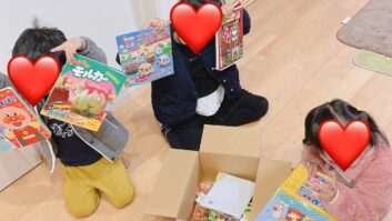 箱を開けた娘が、中から絵本を見つけた瞬間、ぱぁぁっと笑顔になりました。